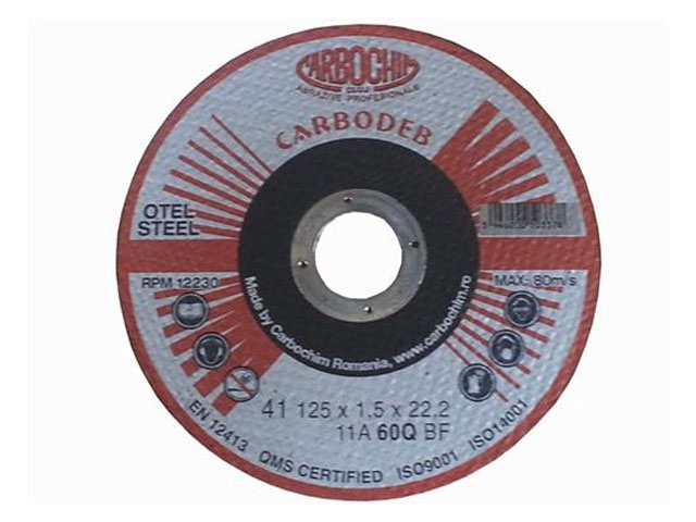 Se utilizeaza impreuna cu masinile fixe de debitare, la taierea cornierelor, tevilor, barelor, placilor metalice, materialelor de constructii etc . Ofera taieri rapide si curate, fara mult zgomot si praf, nu formeaza bavuri. Material carbura de siliciu, incleiere cu rasina sintetica. Discurile sunt armate cu insertii din fibra de sticla . Viteza maxima de lucru 80 m / s. Viteza maxima de rotatie 12230 rp/min. Gaura interior 25.4 mm
